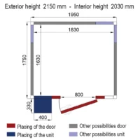 Chambre froide, froid positif, isolation 60 mm, L 2150 x P 2750 mm, 10,8 m³