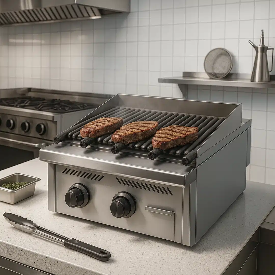 Découvrez notre barbecue à gaz professionnel, idéal pour les chefs et restaurateurs souhaitant servir des grillades savoureuses. Conçu pour les cuisines professionnelles, il allie robustesse et facilité d’utilisation. Fabriqué en acier inoxydable de haute qualité, il est durable et facile à entretenir grâce à ses lignes droites.