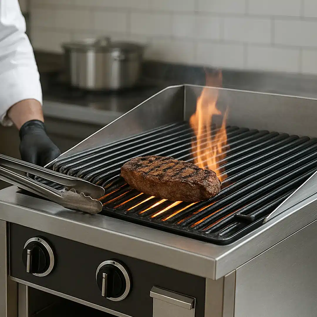 Son design en acier inoxydable AISI 304, épais de 15/10, garantit une robustesse et une durabilité exceptionnelles, résistant aux rigueurs d’une cuisine professionnelle. La grille avec un profil en « V » permet une cuisson uniforme, tandis que le tiroir collecteur de graisse amovible facilite l’entretien. Grâce à ses lignes droites, le nettoyage devient un jeu d’enfant, un atout indéniable pour les établissements à forte cadence.