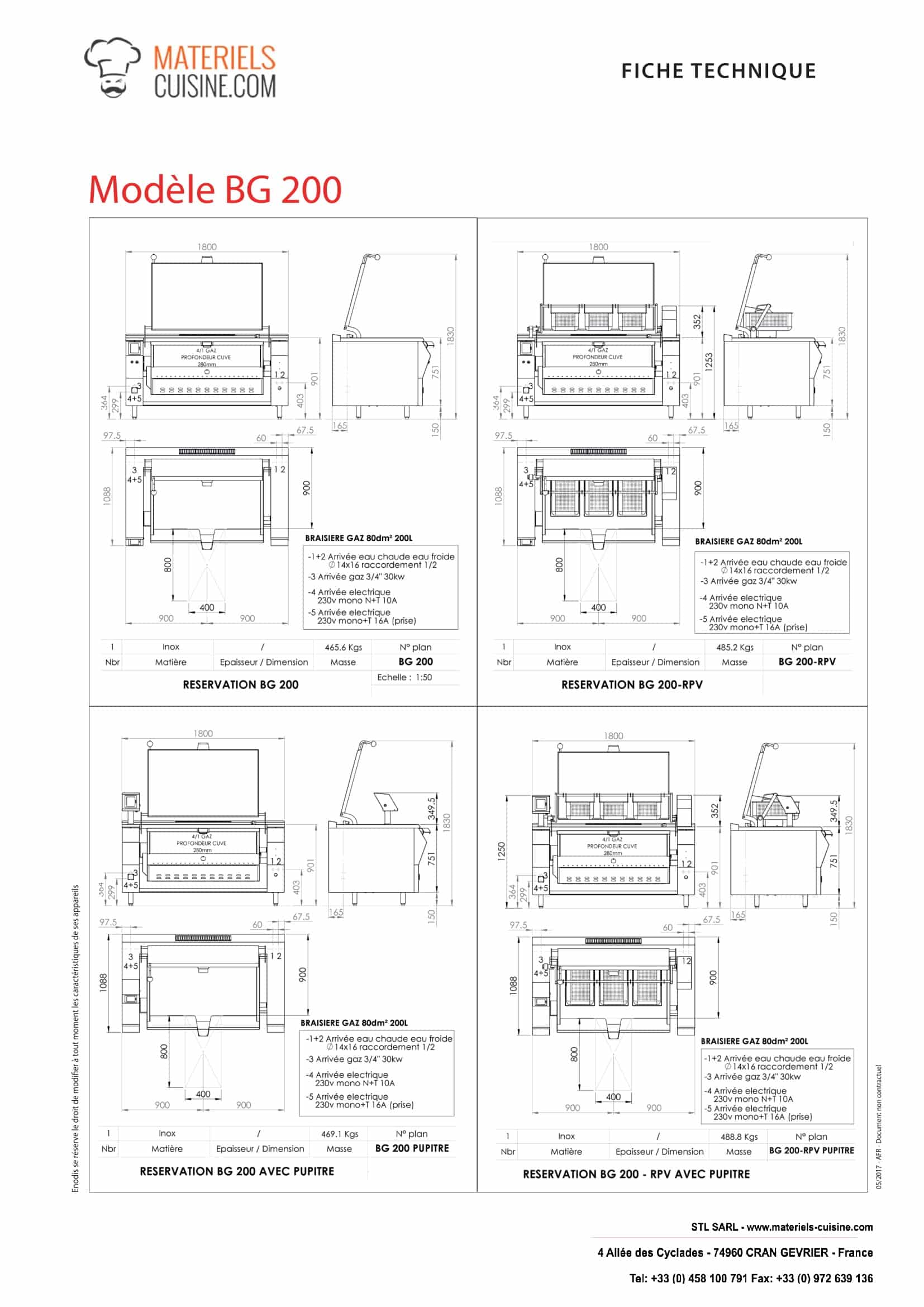 Braisière gaz basculante – GN4/1 – 200 L – 80dm² – 30kw – 1800x1000x900mm
