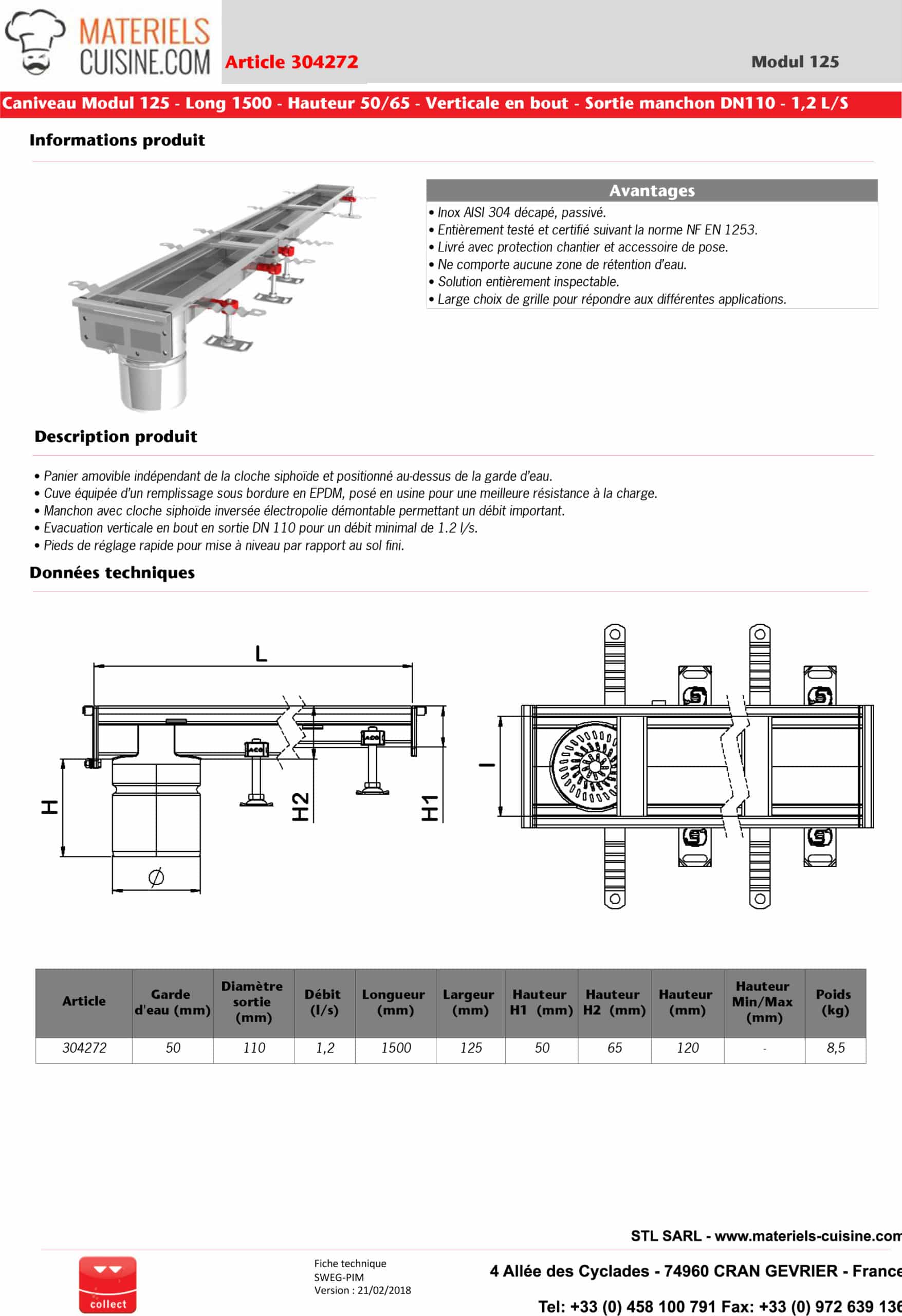 - Norme NF EN 1253 : Entièrement testé et certifié