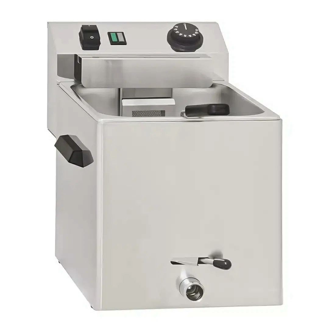 Préparez vos plats de pâtes rapidement avec notre cuiseur à pâtes professionnel électrique, idéal pour les cuisines de restaurant. En acier inoxydable AISI 304, il offre durabilité et performance. Sa cuve de 8 litres assure une cuisson uniforme et sa vanne de vidange facilite le service.