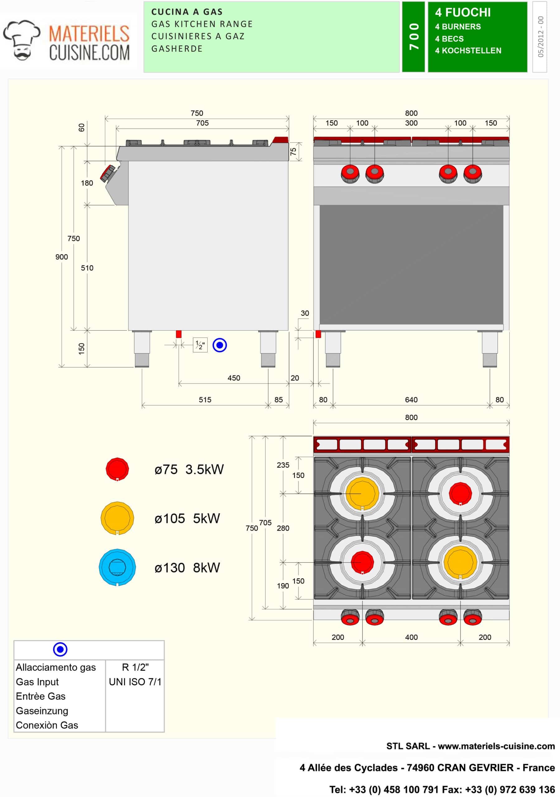 Cuisinière à gaz avec 4 brûleurs, pour améliorer l’efficacité et la productivité de votre cuisine.