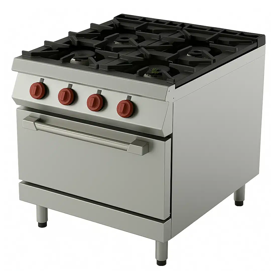 Cuisinière à Gaz Professionnelle 4 Brûleurs en Acier Inox – Performance et Hygiène