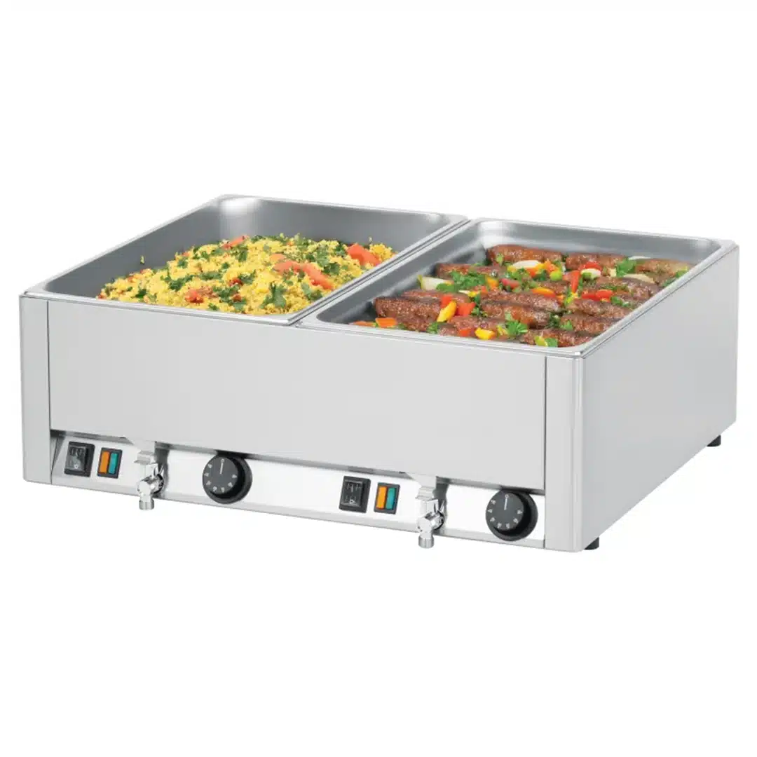 Double bain marie professionnel GN1/1 avec 2 robinets de vidange en acier inoxydable – 3000 W