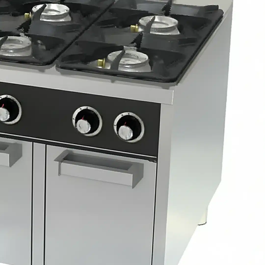 Fourneau à gaz 6 feux série 900 avec four à gaz GN 2/1 + placard neutre – Performance et Style pour Votre Cuisine