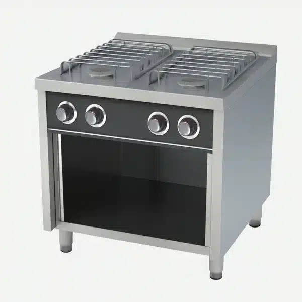 Le Fourneau à gaz basic 4 feux série 750 sur placard allie performance et praticité. Idéal pour les cuisines professionnelles, il offre une cuisson efficace avec un espace de rangement intégré.