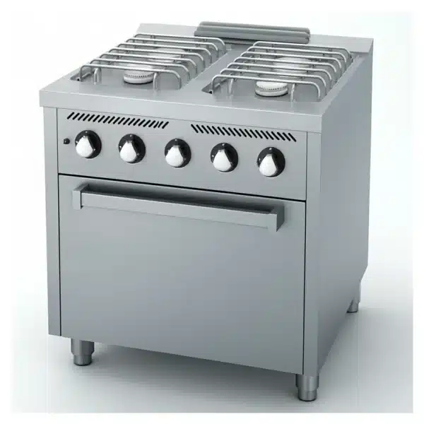 Fourneau à gaz basic 4 feux série 750, avec four à gaz GN 2/1 – Idéal pour une Cuisine Efficace et Chaleureuse