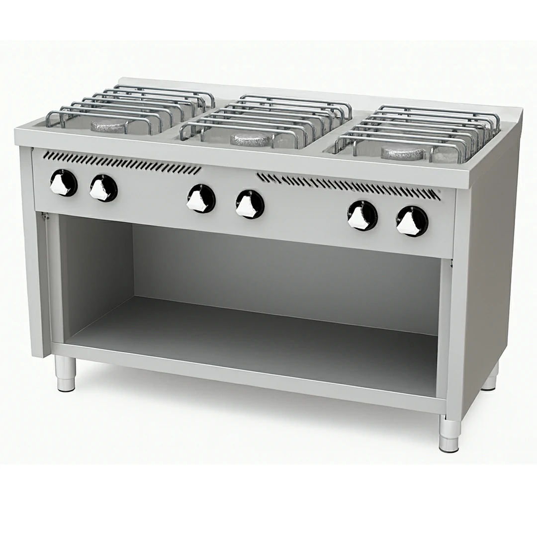 Le Fourneau à Gaz Basic 6 Feux Série 600 est essentiel pour les professionnels de la restauration. Fabriqué en acier inoxydable AISI 304, il offre durabilité et facilité d’entretien. Ses brûleurs à haute efficacité thermique garantissent une cuisson rapide et homogène pour tous vos plats.