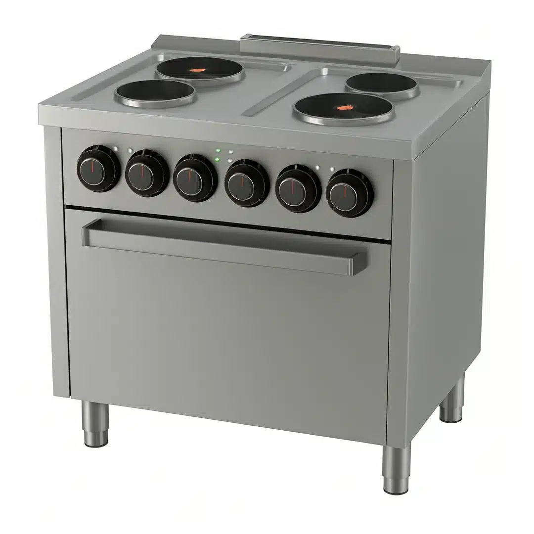 Fourneau Électrique 4 Plaques Série 600 avec Four Électrique GN 1/1 – Performance et Polyvalence pour Cuisine Professionnelle