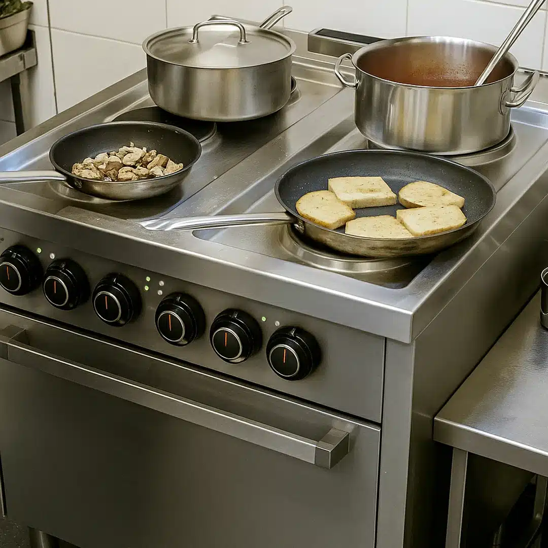 Découvrez le Fourneau Électrique 4 Plaques Série 600 avec Four Électrique GN 1/1, l’appareil idéal pour les professionnels de la restauration. Conçu en acier inoxydable AISI 304, il offre une robustesse et une longévité exceptionnelles, tout en facilitant l’entretien grâce à son dessus embouti de 15/10 d’épaisseur.