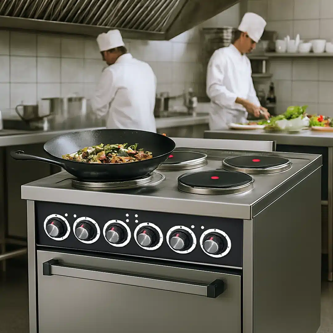 Fourneau électrique série 750 4 plaques, avec four électrique GN 2/1 – Parfait pour tout type de restauran