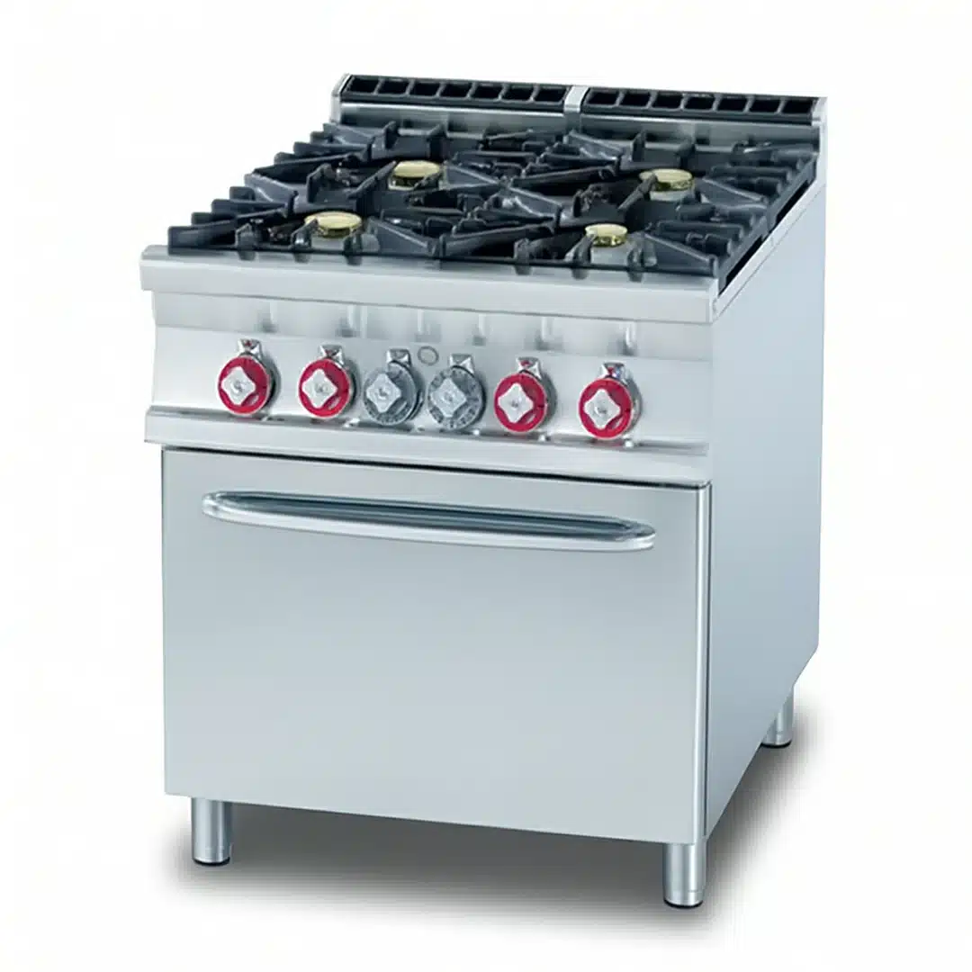 Fourneaux 4 feux gaz sur four gaz GN2/1 36.5 kW – Conçu pour les cuisines de restaurants