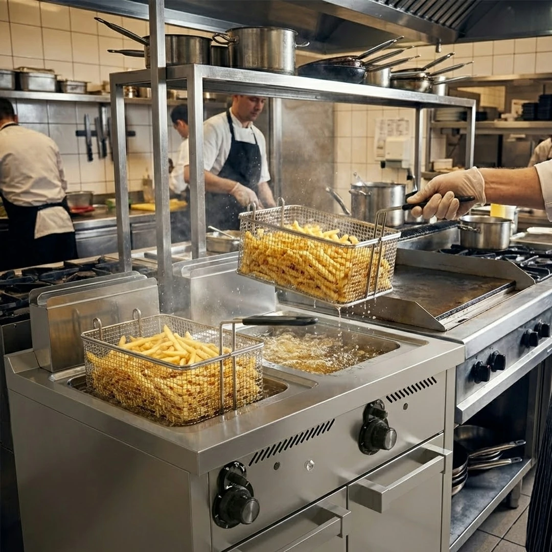 Friteuse à gaz, 8 L + 8 L, série 600, sur placard – La Solution Idéale pour Vos Besoins de Restauration