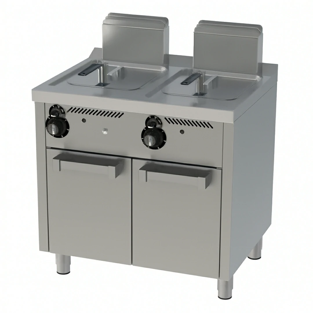 Friteuse à Gaz Professionnelle Série 600 sur Placard – Double Cuve 8 L + 8 L