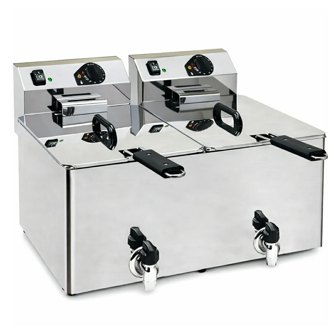 Friteuse de table électrique avec vidange double turbo inox 2 x 10 L – Préparez Vos Fritures en Un Clin d’Œil