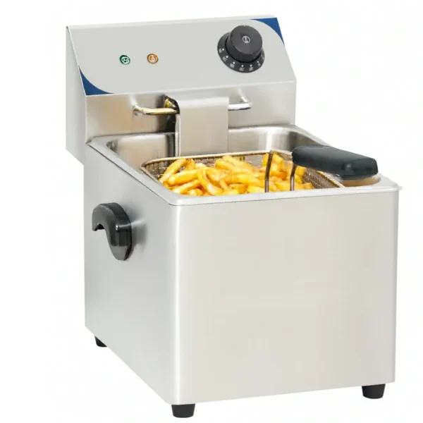 Optimisez votre cuisine professionnelle avec notre friteuse électrique en acier inoxydable de 4 litres. Conçue pour les restaurants, cafés et hôtels, elle offre une performance exceptionnelle pour la préparation de frites, beignets et autres plats frits. Grâce à sa cuve d’une capacité généreuse, vous pouvez cuire plusieurs portions en un temps record, satisfaisant ainsi les clients affamés lors des heures de pointe.