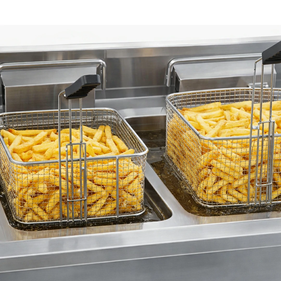 - Double Performance : Préparez de grandes quantités de fritures simultanément, idéal pour les services à forte affluence.