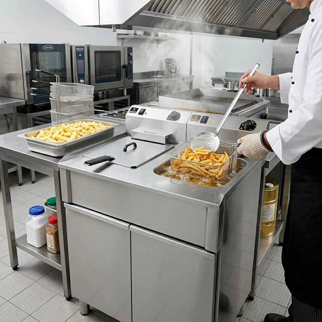 Friteuse Électrique Gros Volume avec Vidange – Double Cuve 400 V, 2 x 3 kg
