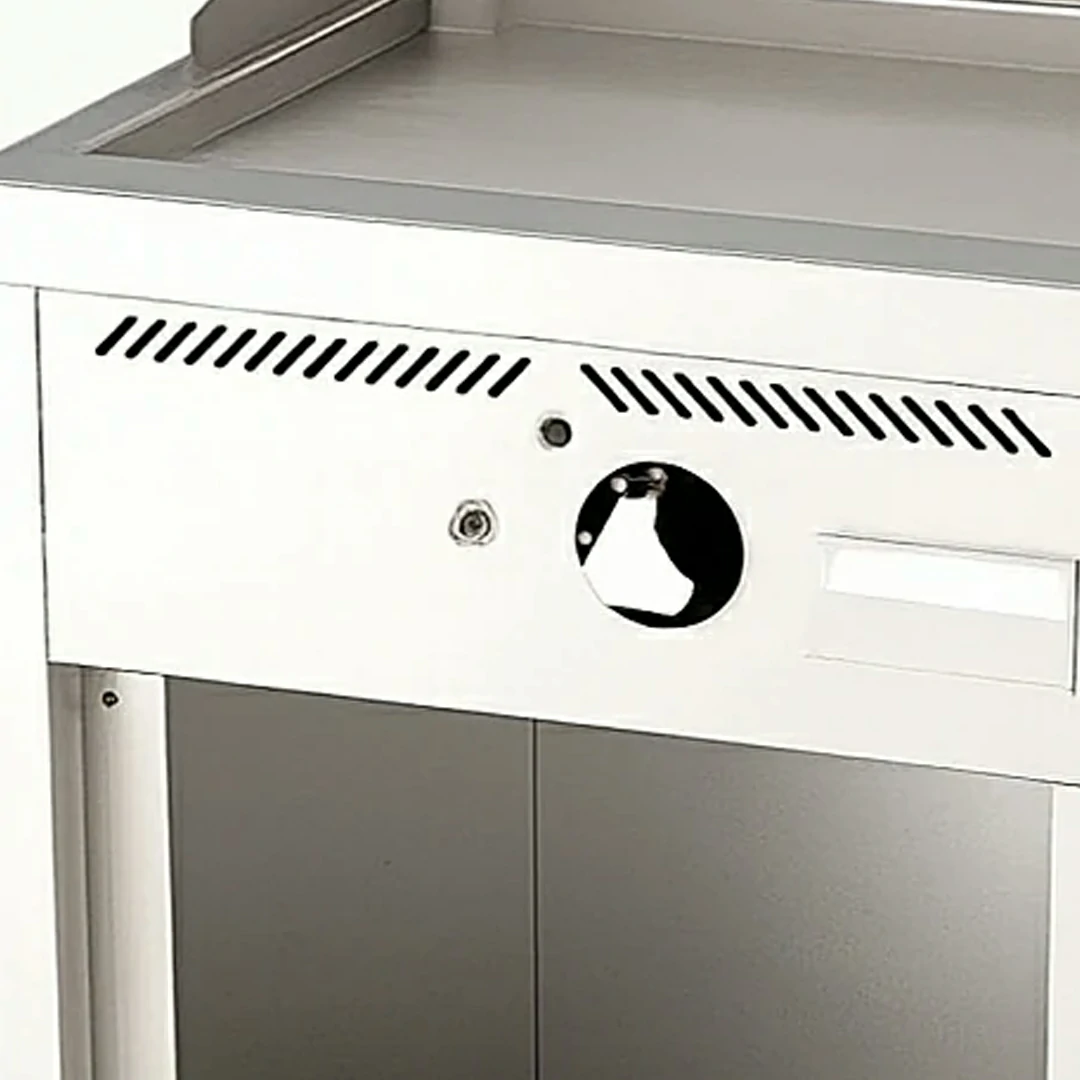 Chaque brûleur dispose d’un allumage automatique et d’un thermocouple de sécurité pour une utilisation sûre. Son corps robuste et ses pieds réglables s’adaptent facilement à tout espace de travail. Avec une puissance de 10 kW et une consommation de 8600 Kcal/h, ce fry-top est parfait pour cuisiner viandes et légumes tout en optimisant l’énergie. Alliez fonctionnalité et style dans votre cuisine professionnelle.