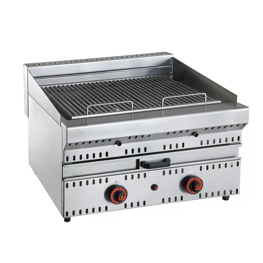 Grill à gaz avec déflecteurs, avec une structure résistante en acier inoxydable, économique et performant, Idéal pour les buffets, les cuisines centrales, les restaurants à grillades et les établissements à forte cadence.