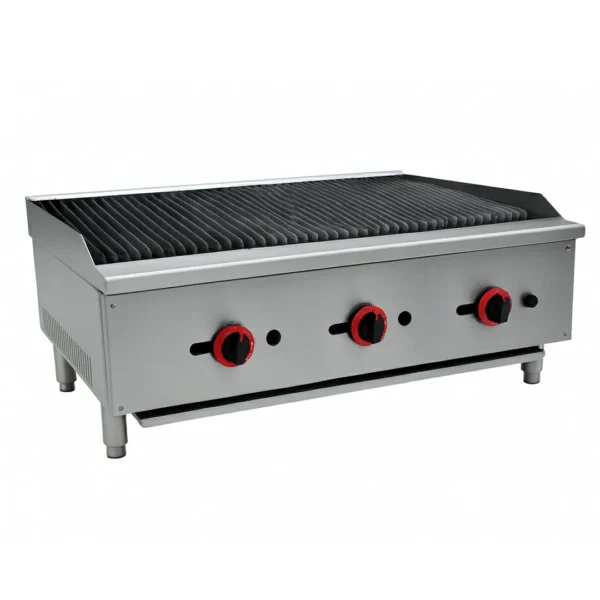 Découvrez le grill charcoal à gaz, essentiel pour les professionnels de la cuisine (CHR) qui veulent préparer de délicieuses grillades. Fabriqué en acier inoxydable, ce grill est à la fois solide et facile à entretenir. Avec ses brûleurs puissants en fonte, il chauffe rapidement et cuit vos viandes, poissons et légumes de manière uniforme.