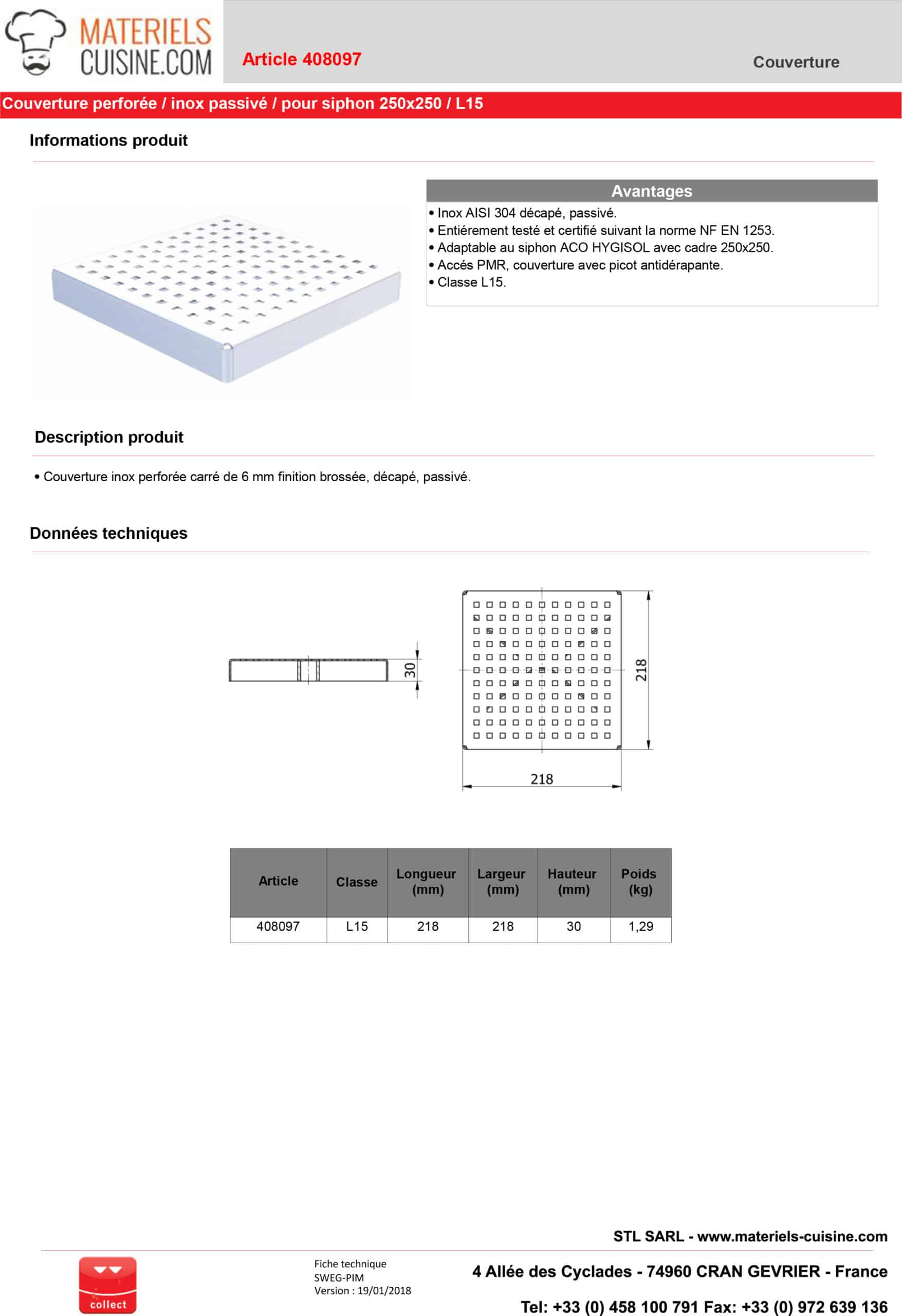 Entiérement testé et certifié suivant la norme NF EN 1253.