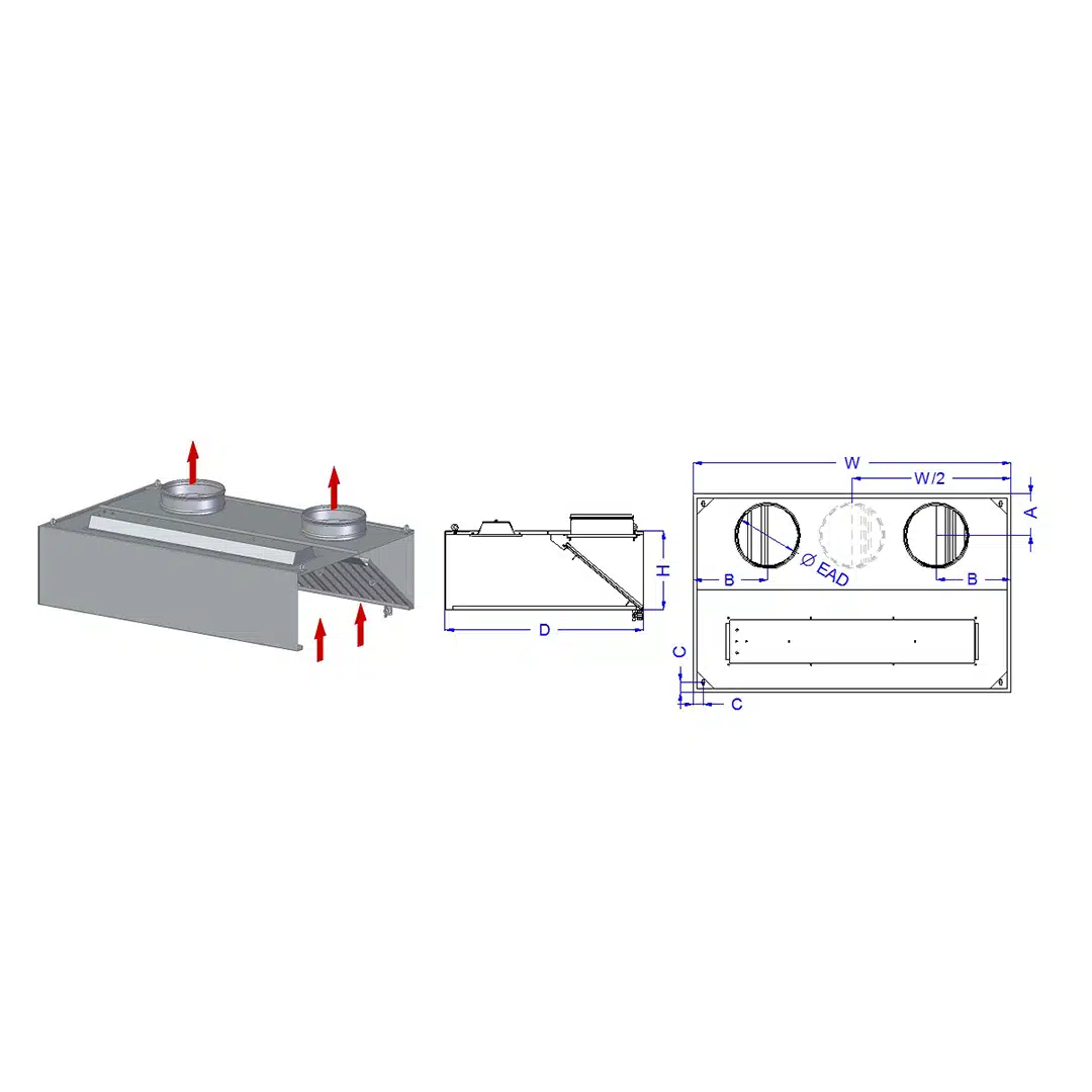 Hotte d’extraction murale (à fixer au centre) – L 700 x P 600 x H 400 mm
