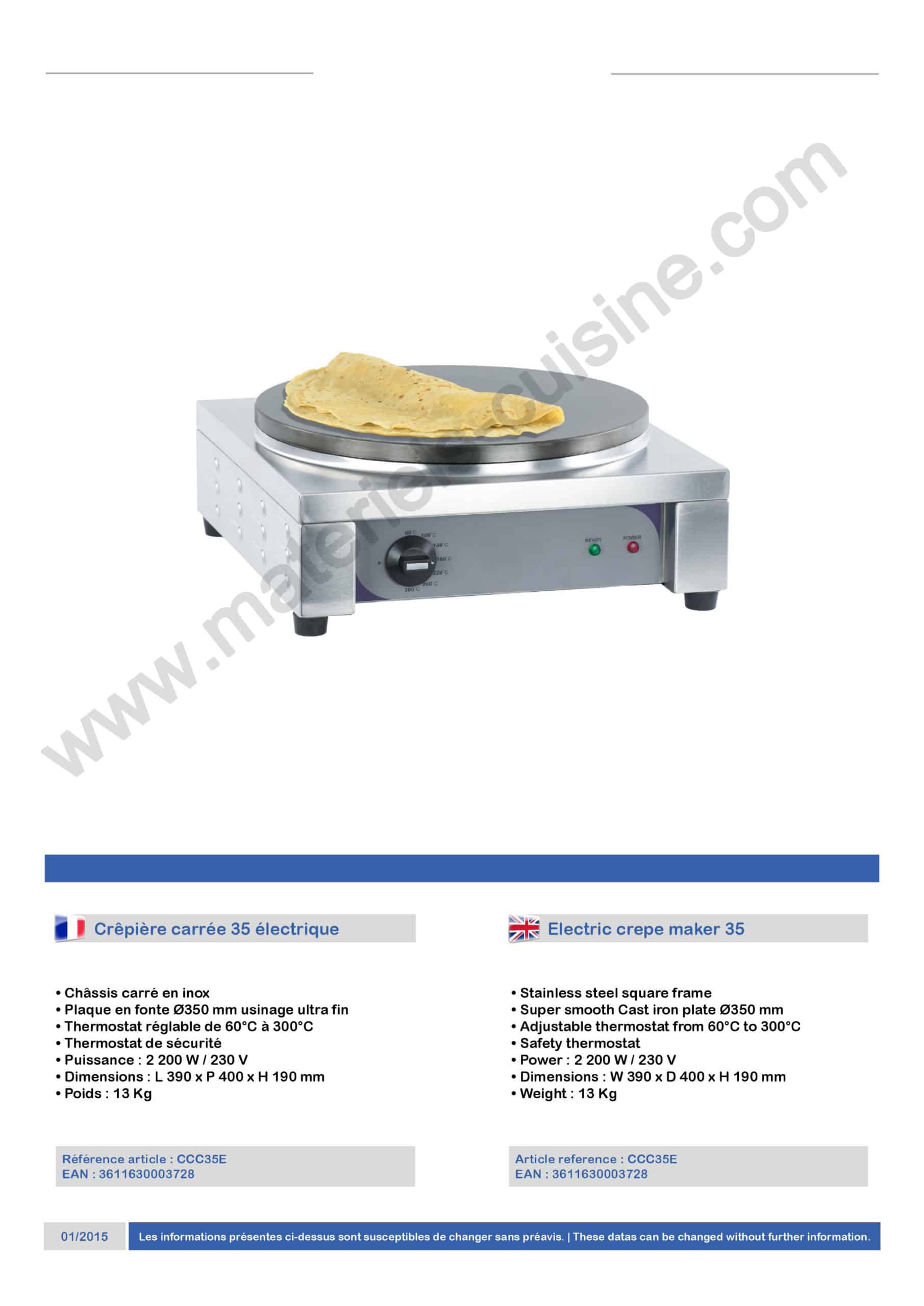 - Performance Fiable : Offre une cuisson rapide et parfaite pour des crêpes de haute qualité.