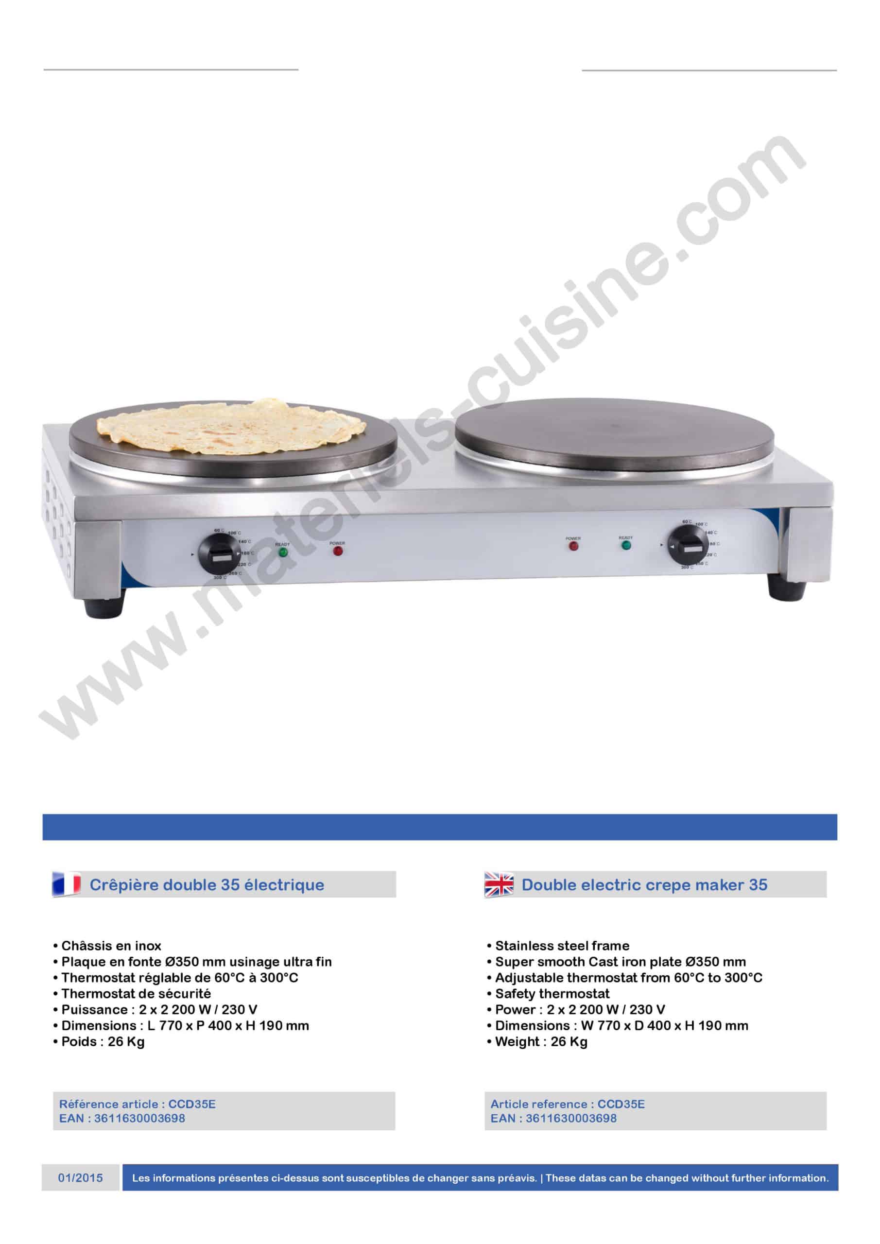 Machine à crêpe professionnelle, pour réaliser une maxi crêpe double de Ø350 mm.