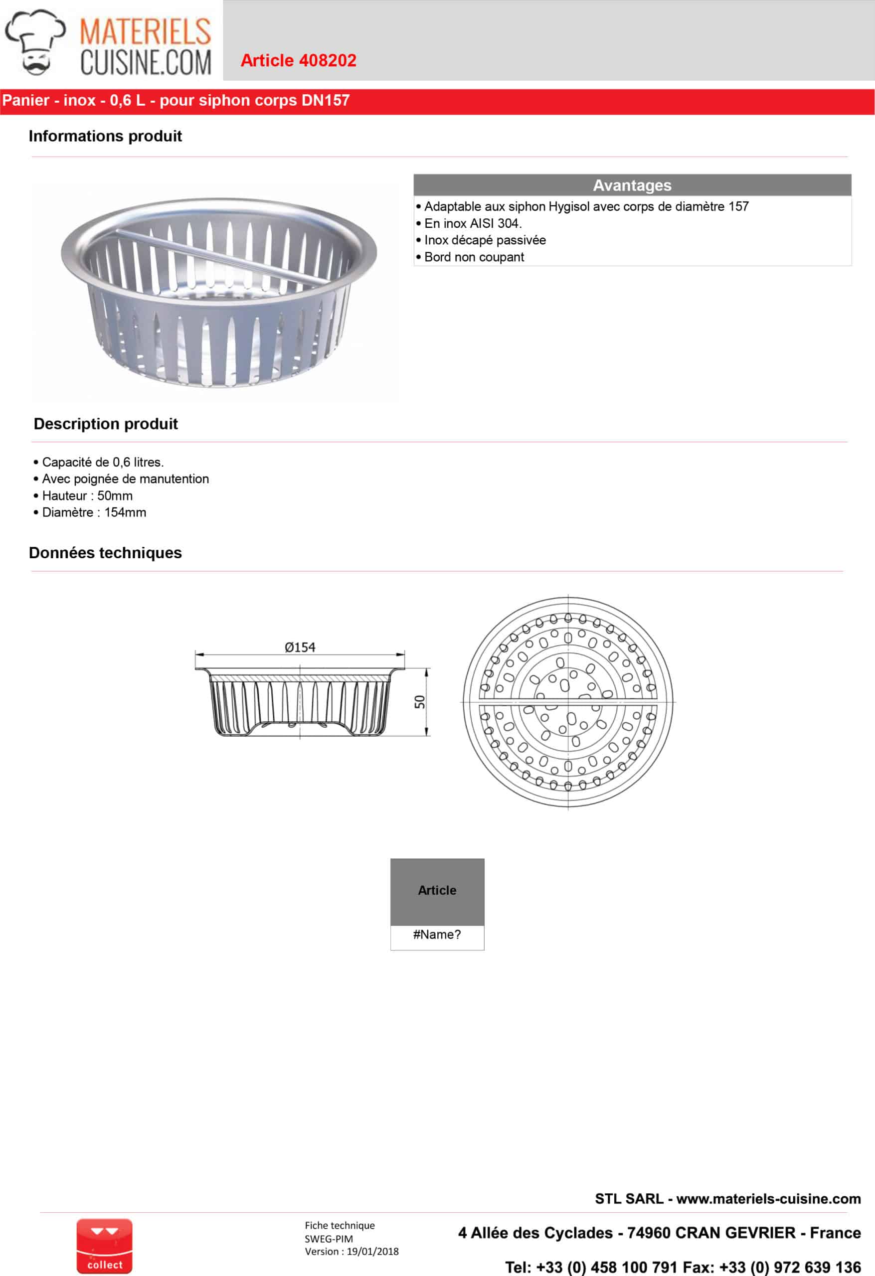 Panier inox, pour boitier Ø 157 mm – 0,6 L