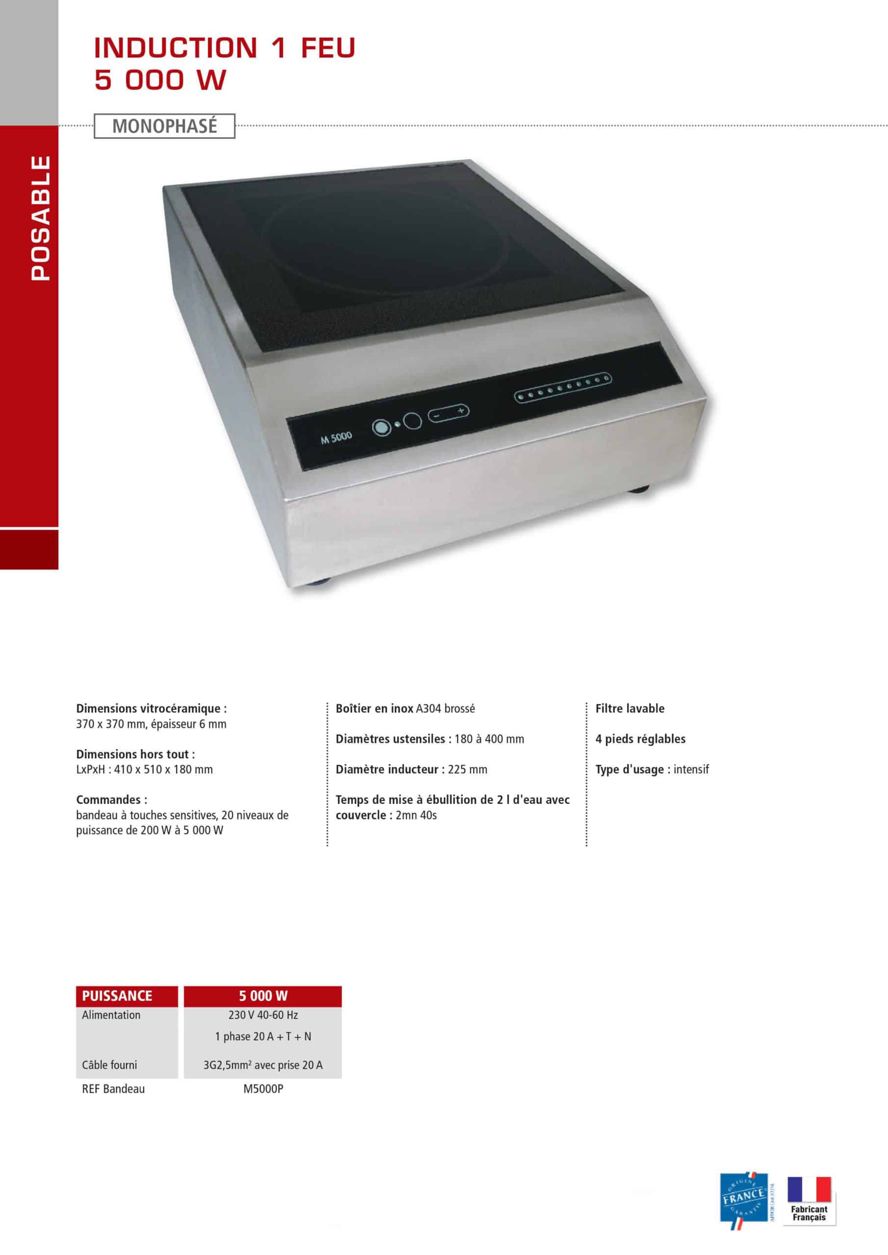Plaque à induction professionnelle posable – 1 foyer, 5 000 W