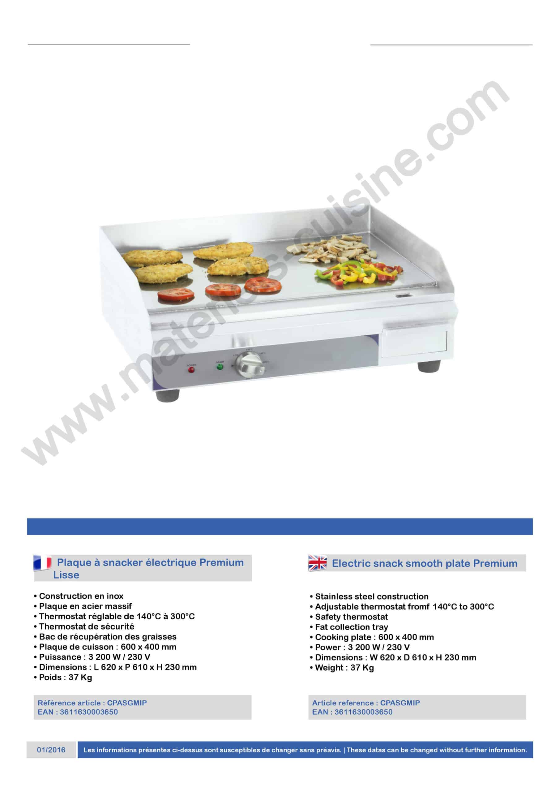 Catégories : Appareil Snacking électriques + Divers, Cuisson, Matériel snacking, Plaque à snacker professionnelle