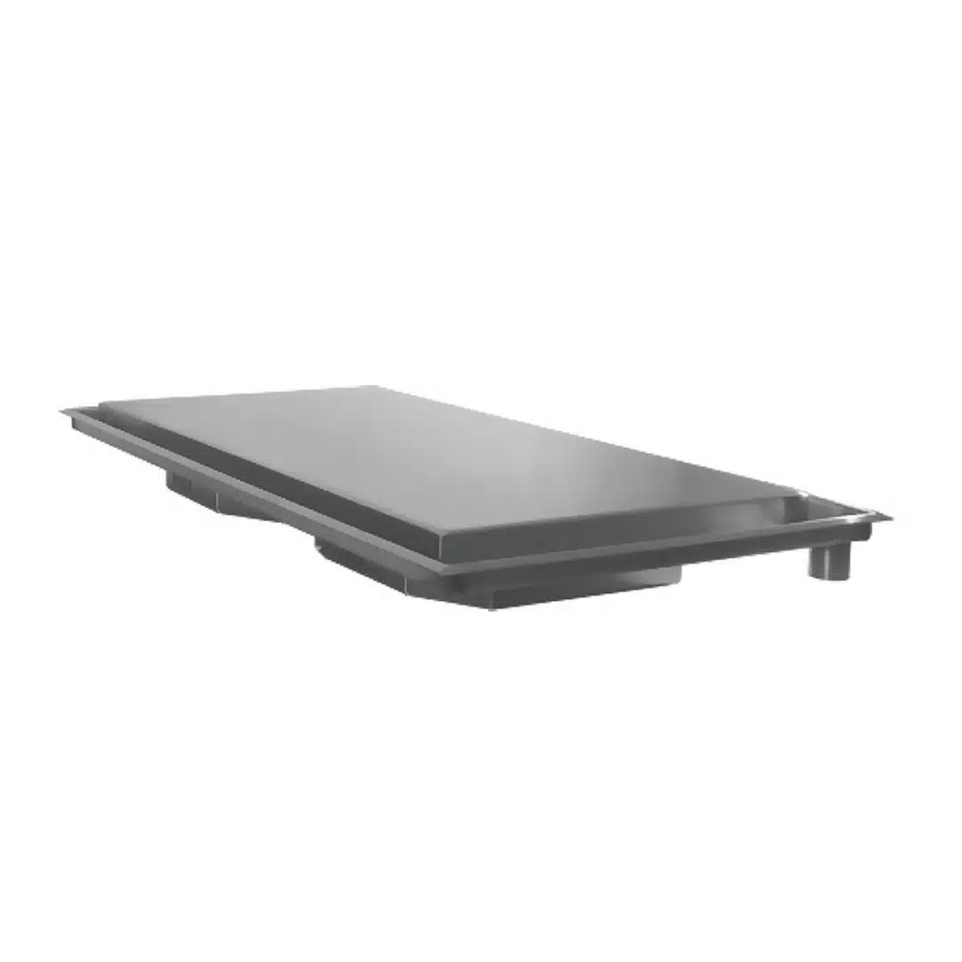 Cette plaque permet de créer un gradient thermique sur toute la surface, idéal pour réserver les aliments pendant le service. La technologie FTR compense immédiatement toute chute de température dès qu’un aliment est posé, garantissant une cuisson constante et précise. Le plan de cuisson en inox VMB limite les pertes de chaleur et offre un confort optimal. Le nettoyage est rapide grâce à une surface lisse et accessible.