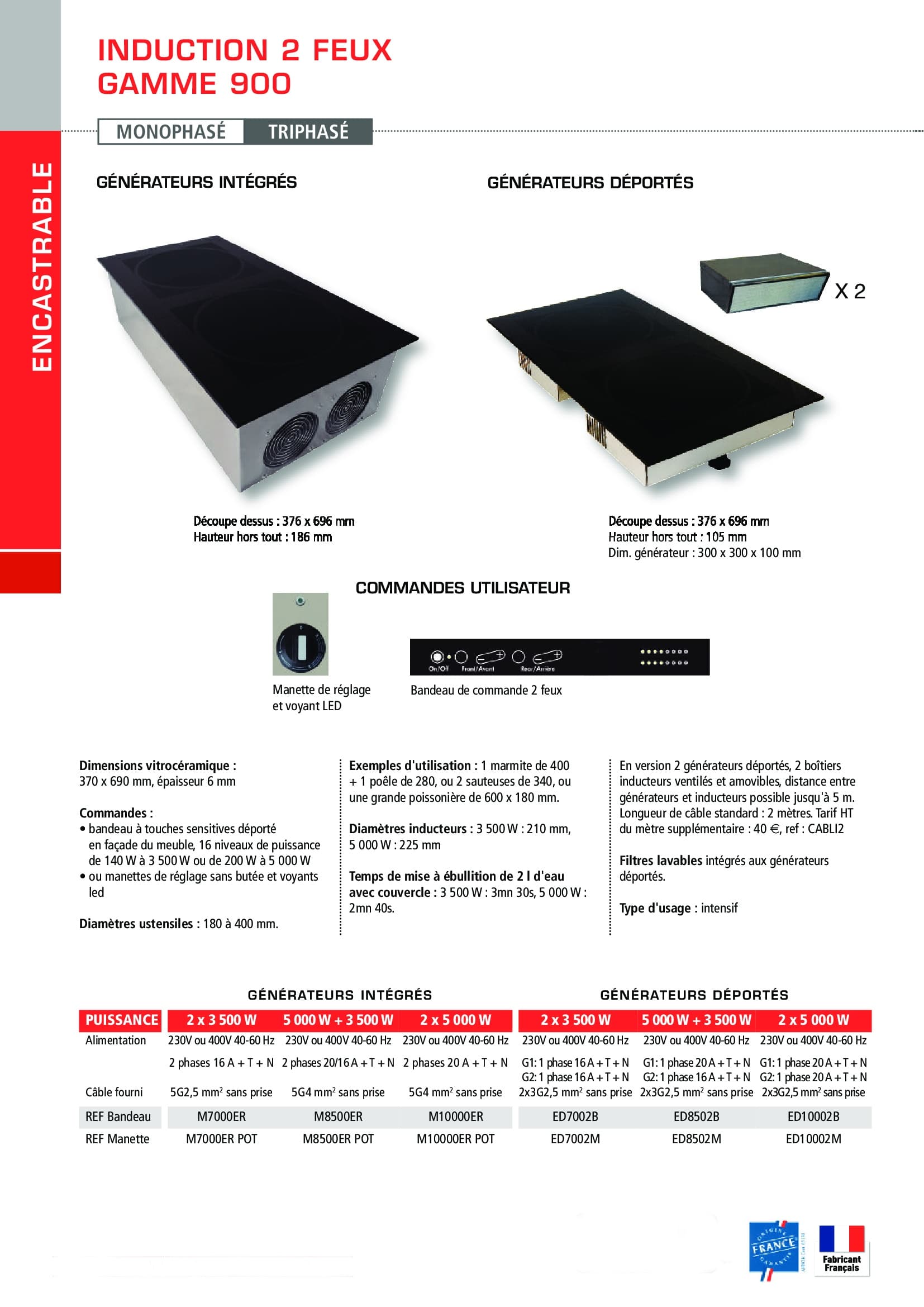 Induction encastrable Gamme 900 2 x 3 500 W – Vitrocéramique sur mesure.