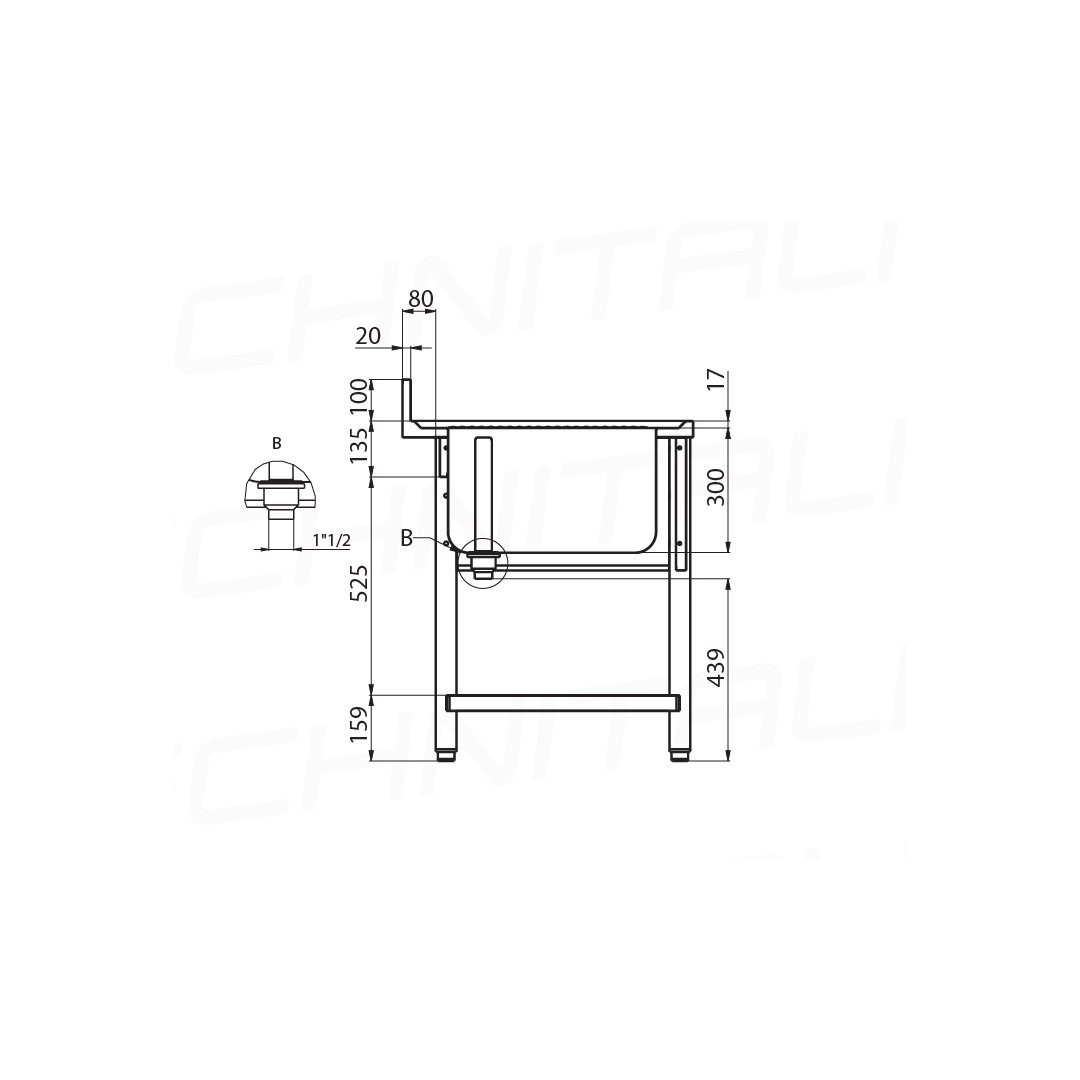 Le plan de travail est réalisé en acier inox AISI 304 épaisseur 10/10.