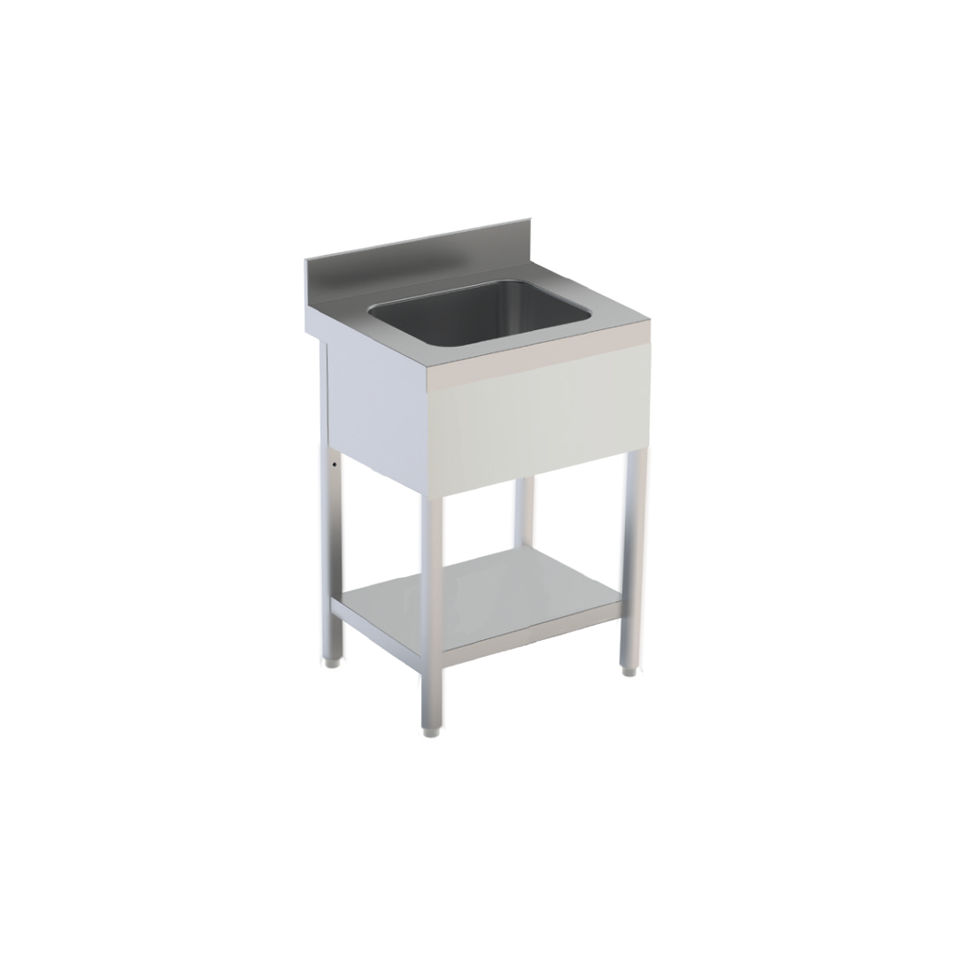 Plonge démontable avec étagère 1 bac acier inox AISI 304 10/10 – L 600 x P 600 x H 850/900 mm
