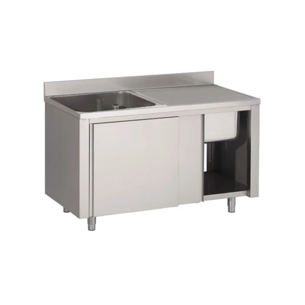 Plonge sur armoire INOX AISI 430 portes coulissantes 1 bac à gauche L 1000 x P 600 x H 850 mm