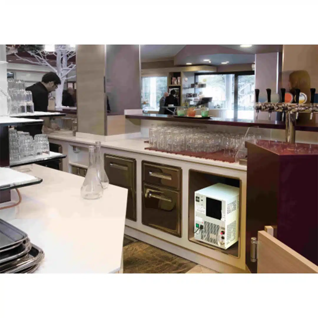 Refroidisseur d’eau encastrable 45 L/h, offre une distribution illimitée d’eau froide ou gazeuse, selon vos besoins quotidiens.