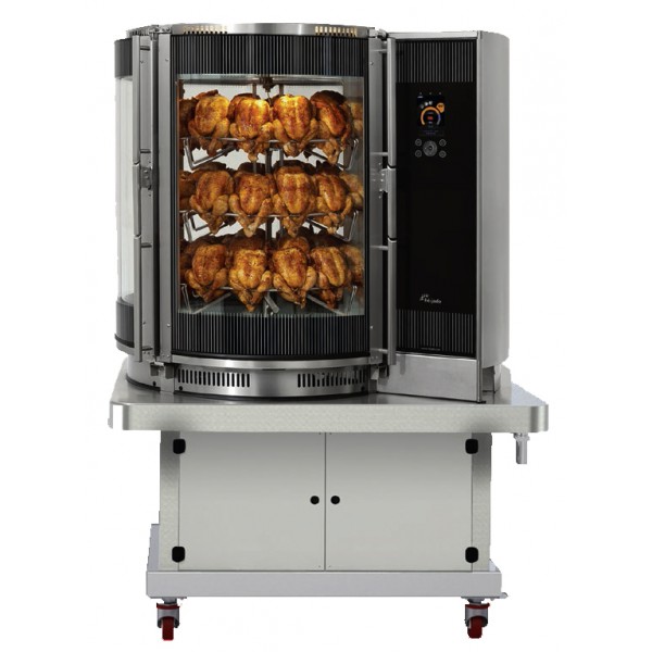 Rôtissoire autonettoyante multisserie sur chassis à roulette