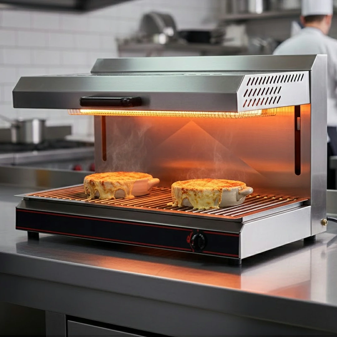 Salamandre à gaz avec plafond mobile et technologie infrarouge, parfaite pour cuire, gratiner et réchauffer vos plats avec une grande efficacité.