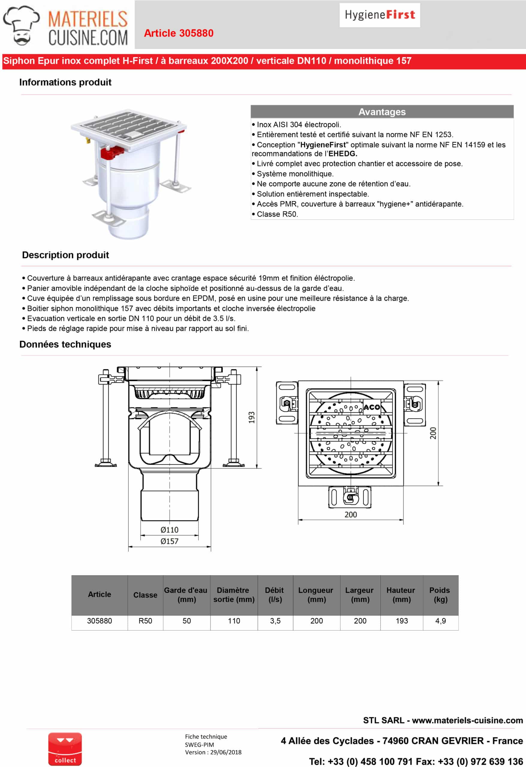 - Certification : Entièrement testé et certifié suivant la norme NF EN 1253.