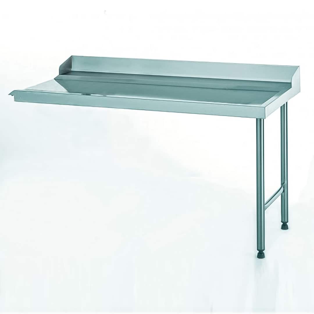 Table de glissement avec plage arrière et dosseret sur mesure, raccordable sur une machine ou sur une autre table, avec une structure robuste en acier inoxydable, idéale pour les professionnels de la restauration.